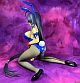 Black ink transfer / staining on legs due to fishnets (especially underneath), which is common for this figure.
