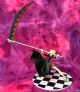 Height to tip of scythe blade point: ~34.5 cm -- this can be lowered if the handle is pushed down and/or rotated more