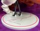 Peg for the dress is finicky to get into its hole, but it does stay in its hole with some effort. Occasionally have to settle for the peg resting half-inserted; the dress is just so heavy. We had this on a shelf for a month with fine stability -- it's only when we'd move it / test bumping it that the dress peg might lose hold.